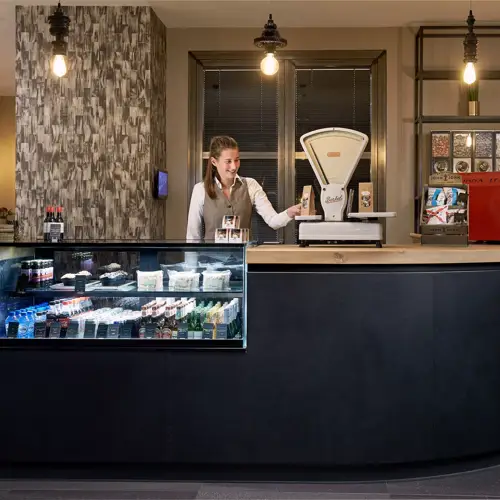 Der Laden befindet sich an der Rezeption des Hotels und ist rund um die Uhr, 7 Tage die Woche geöffnet.
